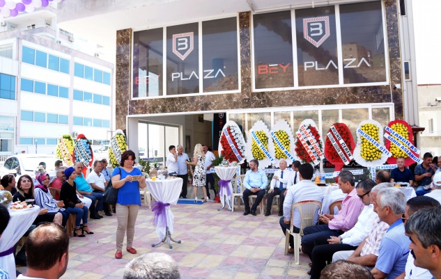 İşadamları Bilal Yıldırım ve Mehmet Şan tarafından işletilecek Bey Plaza’nın Alparslan Türkeş Bulvarı’nda bulunan işyerinde düzenlenen açılış törenine Anamur Kaymakamı Mehmet Kurdoğlu, AK Parti İlçe Başkanı Feyzullah Yılmaz, MHP İlçe Başkanı Ahmet Karan, CHP İlçe Başkanı Ayhan Güven ve yönetimi, Esnaf Sanatkarlar Kredi ve Kefalet Kooperatifi Başkanı Ahmet Özdemir, Ticaret ve Sanayi Odası Başkanı Ferudun Torunoğlu, Meslek Yüksekokulu Müdürü Gürkan Temiz, AK Parti Belediye Meclis Üyeleri Cengiz Pınar, Yılmaz Bulut, İbrahim Çıtırkı, BBP İlçe Başkanı Hüseyin Demir ve yönetimi, Ziraat Odası Yönetim Kurulu üyeleri Üstün Atalay ve Mehmet Cop, Tarım Kredi Kooperatifi Müdürü Hakan Özdemir, Bozyazı Kaymakamlığı Yazı İşleri Müdürü Mehmet Baturay, Renault Yetkili Servisi Özçetinler Otomotiv sahibi Tamer Nar, Derya Otomotiv Yönetim Kurulu Başkanı Hasan Kış, Deniz Tarım Citroen Bayii Durmuş Deniz, SMMM Anamur Temsilcisi İsmail Erdoğan Güngörler İnşaat Hafriyat Madencilik L.T.D Ş.T.İ Anamur Müdürü Haydar Güngör ve çok sayıda davetli katıldı.
