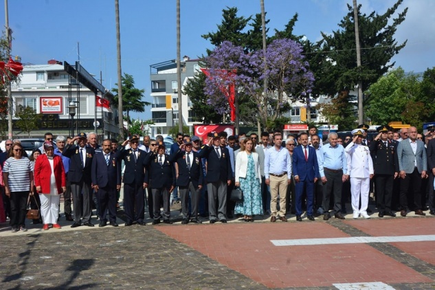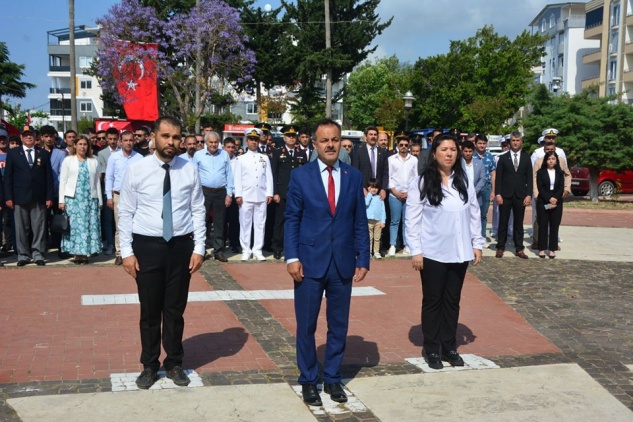 15 Temmuz Demokrasi ve Cumhuriyet Meydanı’nda gerçekleşen ilk törende, İlçe Milli Eğitim Müdürü Aziz Gedik Atatürk Anıtına çelenk sundu. Ardından saygı duruşunda bulunuldu ve İstiklal Marşı okundu. Törene, Belediye Başkanı Mustafa Çetinkaya, Sahil Güvenlik Bot Komutanı Gökhan Çalık, İlçe Jandarma Komutanı Kadir Dölek, İlçe Milli Eğitim Müdürü Aziz Gedik, kurum amirleri, gaziler, siyasi parti temsilcileri ve vatandaşlar katıldı.