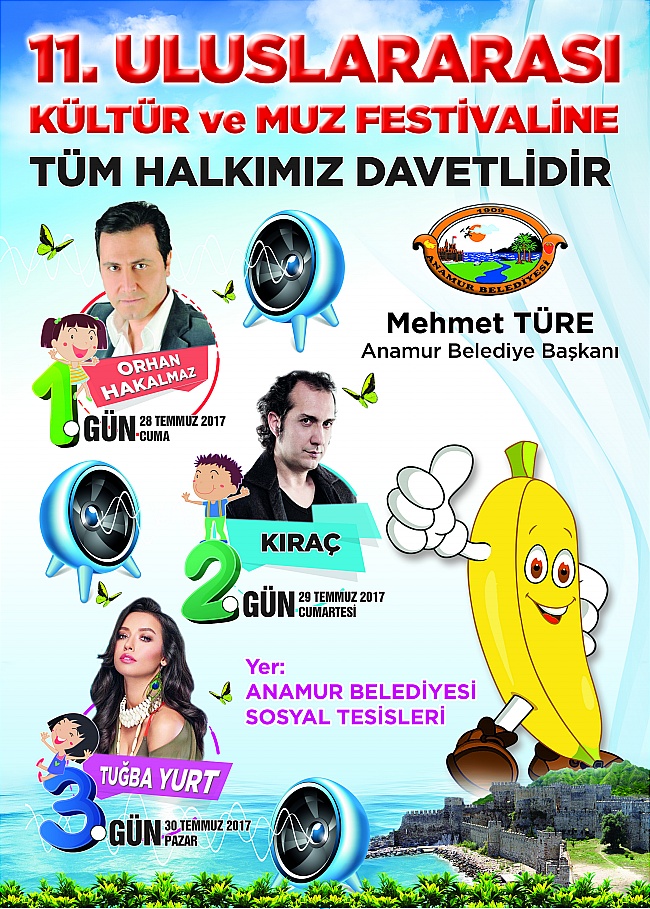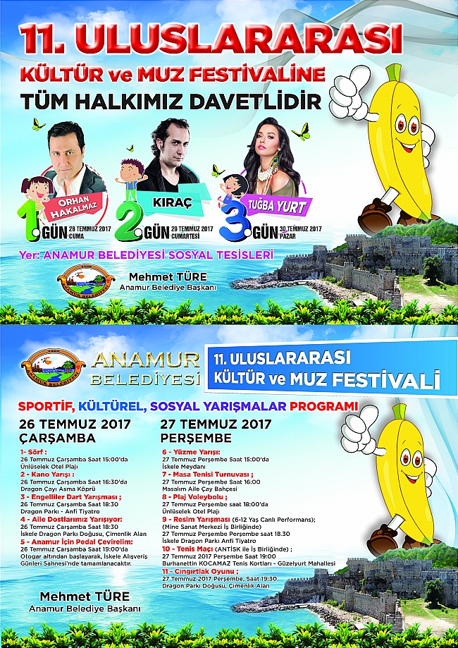 Ben sözlerimi sonlandırırken, 28-29-30 Temmuz 2017 tarihlerinde düzenleyeceğimiz 11. Uluslararası Kültür ve Muz Festivali’nin ilçemize, bölgemize ve ülkemize hayırlı olmasını temenni ediyorum.