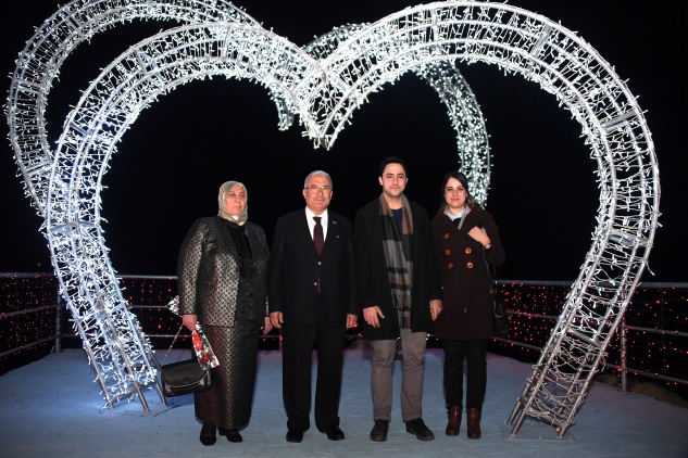 Mersin Büyükşehir Belediye Başkanı Burhanettin Kocamaz da eşi Hatice Kocamaz ile birlikte etkinlik alanına gelerek, ışıklı kalplerde fotoğraf çektirdi.