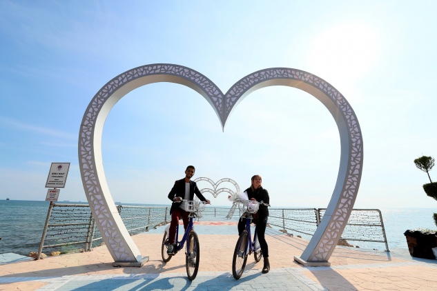 Mersin Büyükşehir Belediyesi Park ve Bahçeler Dairesi Başkanlığı tarafından sevgililer gününe özel yaptırılan kalpli bankta ve ışıklı kalplerde fotoğraflarını çektiren vatandaşlar, çektirdikleri fotoğrafların anında kendilerine verilmesini de büyük bir memnuniyetle karşıladı.