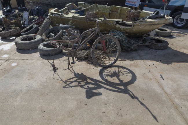 Denizden çıkan atıklar arasında balıkçı teknesi de vardı bisiklet de