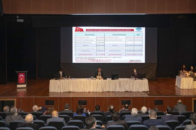 Başkan Seçer, 2020 yılı yatırım programı içerisinde yer alan ve yüksek meblağlar tutan imalatları, mal ve hizmet alımlarını, yapılan ödemeleri, bu ay içerisinde karşılaşılacak tabloyu, borçlanma gerçekleşmediği takdirde gelecek yıla devredilecek hususlarıda tek tek anlattı. Seçer, “Toplamda emanet borç dediğimiz yani piyasaya olan borç artı banka borçlarımız 2 milyar 246 milyon 949 bin TL idi.Geçtiğimiz sunumda 648 milyon 475 bin TL borç stokumuzdan azalma oldu demiştim. Üzerinden bir ay geçti, bu bir ay içerisinde toplamda yaklaşık olarak 43 milyon TL bir borç eksilmesi daha oldu.Biz sürekli borç ödüyoruz. Geçtiğimiz dönemin borçları. 1 milyar 555 milyon TL Mersin Büyükşehir Belediyesi’nin borç stokunda da borç görünüyor” ifadelerine yer verdi.