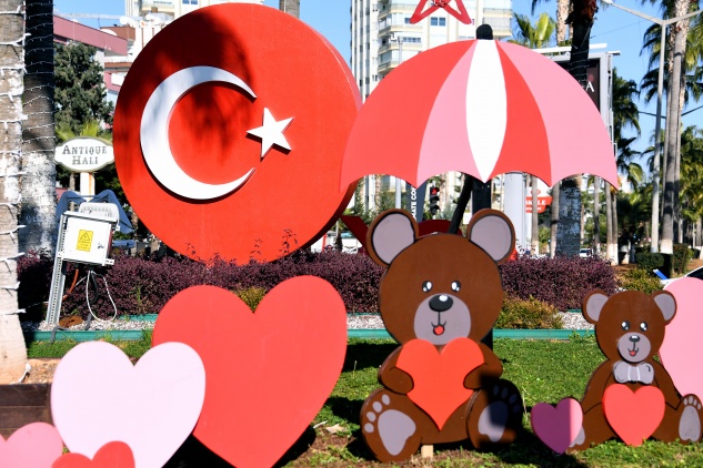 Mersin Büyükşehir Belediyesi, birçok çift için özel bir gün olan 14 Şubat Sevgililer Günü öncesinde kenti sevgi ve aşk temalı figürlerle süsledi.