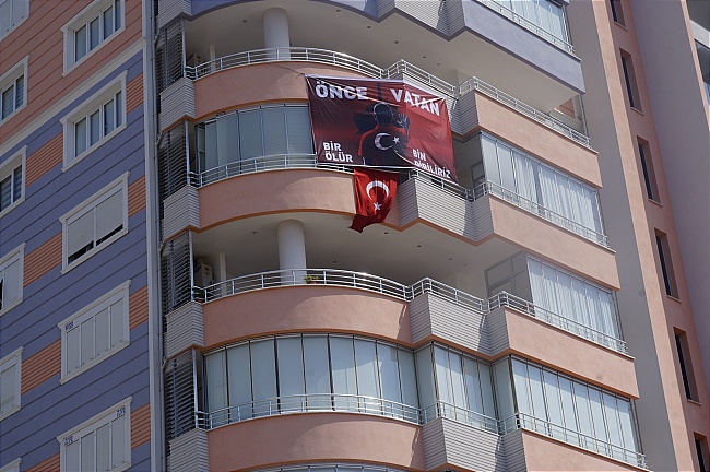 gündem00115 Temmuz darbe girişiminin birinci yıl dönümü nedeniyle toplumun her kesiminin birlik ve beraberlik duygusuyla hareket etme bilinci doğrultusunda anlamlı bir sosyal sorumluluk kampanyası gerçekleştiren Anamurlu hemşerimiz AK parti Büyükşehir ve Anamur Belediye Meclis Üyesi Cengiz Pınar’ın evinde ası olan ÖNCE VATAN BİR ÖLÜR BİN DİRİLİRİZ yazılı pankart bir gazeteci olarak dikkatimi çekti. Ve beraberinde Türk bayrağının da yer aldığı bu güzel pankart 15 Temmuz Demokrasi ve Milli Birlik gününde örnek bir davranışa imza atan Cengiz Pınar’ı şahsım olarak tebrik ediyorum.  Evinin ön balkonunda asılı bu dev pankart benim olduğu kadar caddeden geçen vatandaşlarında dikkatini çekiyor.