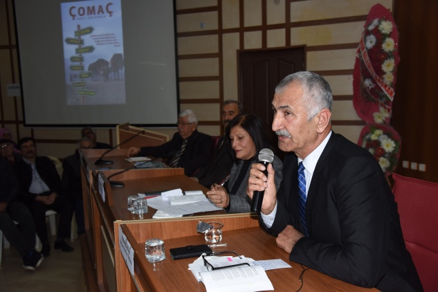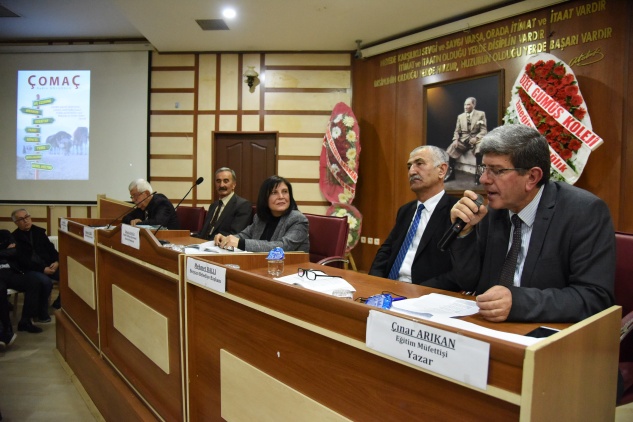 Konuşmacıların ardından Çomaç kitabının yazarı Aydın Doluoğlu kitap ile ilgili bilgileri aktardı. Kitap; Anamur’u, kültürü, dili, tarihi ve yöreselliği anlattığını belirtti. Anamur’un bir Çomaç tadında dili, kültürü ve tarihi yansıttığı kitapta eski ile yeni kelimeler arasında geçişi anlattığı belirtti.