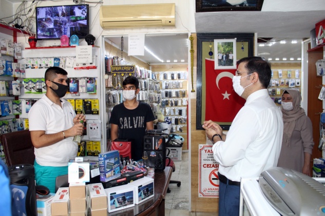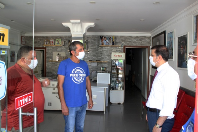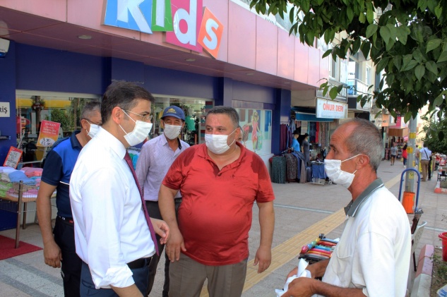 Başaran beraberinde Belediye Başkan Yardımcıları Ahmet Çetin ve Mahmut Kara, İlçe Tarım ve Orman Müdürü Niyazi Sarıoğlu ve İlçe Sağlık Müdürü Dr. Cem Adil ile birlikte esnafları ve vatandaşları tedbiri elden bırakmamaları konusunda uyardı.