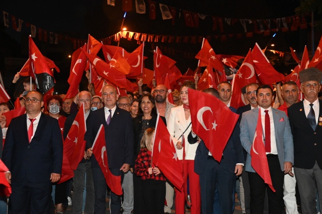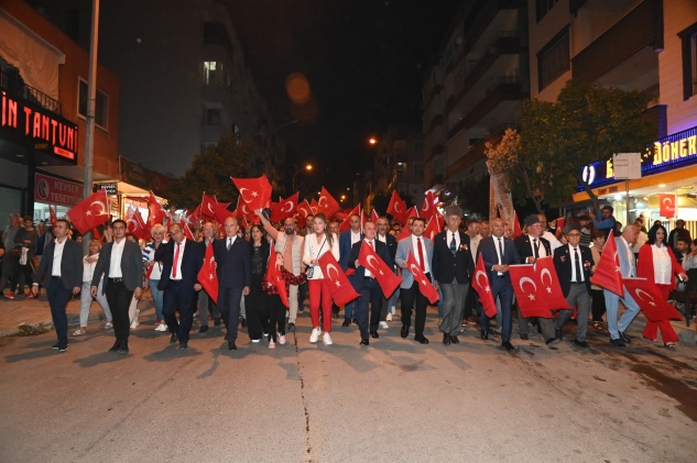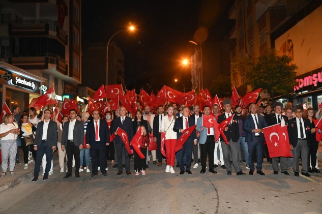 Düzenlenen Fener Alayı’na Kent Protokolü, Siyasi Parti İlçe Başkanları, Sivil Toplum Kuruluşu temsilcileri, Belediye Başkan Yardımcıları, Meclis Üyeleri, Mahalle Muhtarları, gaziler ve vatandaşlar katıldı.