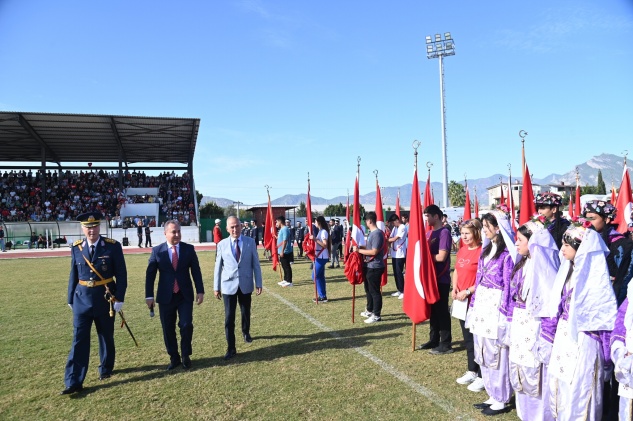 İlçe Kaymakamı Bilal Bozdemir, Belediye Başkanı Durmuş Deniz, Garnizon Komutanı Albay Atalay Kostak, Cumhuriyet Başsavcısı Tanju Çatlı ve binlerce vatandaşın katıldığı etkinliklerle Anamur Atatürk Stadyumu’nda başlatılan kutlama programı, aynı gün düzenlenen Fener Alayı ile taçlandırıldı.