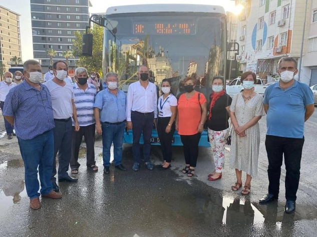 Deniz ve beraberindekiler daha sonra Mersin Büyükşehir Belediyesi’ne ait halk otobüsünde şoförlüğe başlayan Gönül Koç’a hayırlı olsun ziyaretinde bulundu.