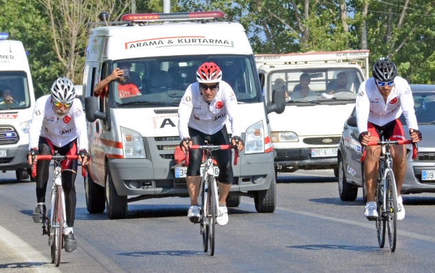 Sinop Tosya’dan 12 Ağustos’ta yola çıkan AKUT sporcuları Murat Boz, Derya Keçeçi ve Mahmut Doğrugil, Orta Anadolu’daki fay hattı üzerinde, bisikletle 6 etapta toplam 1000 kilometre yol kat ederek 1999’daki Marmara Depremi’nin yıldönümünde Anamur’a ulaştı.