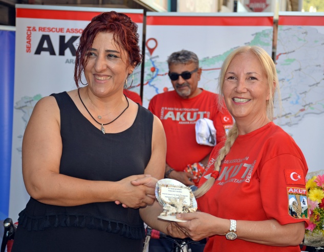 Karşılamanın ardından ilçe merkezine pedal çeviren sporcular Atatürk Bulvarı’nı geçerek Muşurup Sanat Sokağı’nda yolculuklarını noktaladı. Burada yapılan törende sporculara ve AKUT ekibinde yer alan Erdinç Solak, Zafer Ataklı, Ruhi Başak ve Demet Işıl Başak’a plaket ve hediyeler takdim edildi.