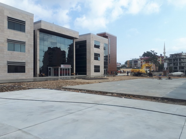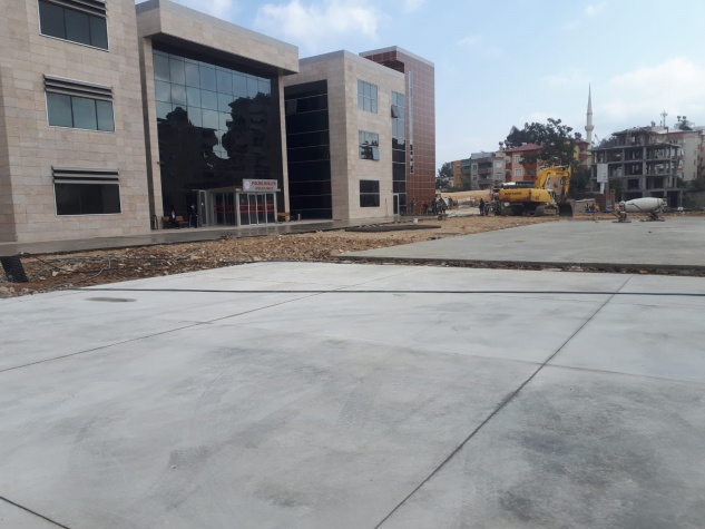 Otopark alanı olarak düzenlenen bölümlerde beton dökme işlemi devam ederken bahçe ve çevre düzenlemeleri de aralıksız sürdürülüyor.