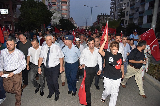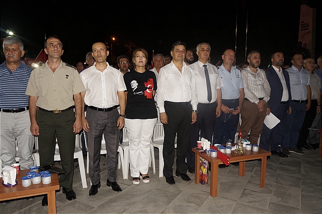 Saygı duruşu ve İstiklal Marşı ile başlayan programda günün anlam ve önemini belirten konuşmayı Anamur Kaymakamı Cengiz Cantürk yaptı. Cantürk Konuşmasına, 15 Temmuz şehitleri ve tüm şehitlere rahmet dileyip, gazilere de şükranlarını sunarak sözlerine şöyle devam etti: Geçtiğimiz yıl 15 Temmuz akşamı kanlı darbe girişiminde bulunanların askerin, polisin ve sivillerin üzerine ateş açarak kanlı hedeflerini gerçekleştirmeye çalıştıklarını belirterek, ”Ancak, hesap edemedikleri bir şey vardı. Kahraman askerler ve polisler ile meydanlara çıkan vatandaşlar, demokrasimizi, vatanımızı, bayrağımızı, milletimizi savunarak onlara geçit vermediler” dedi. Cantürk, su uyur düşman uyumaz atasözünü hatırlatarak ‘’O zaman biz de uyumayacağız ve demokrasi nöbetimizi sabaha kadar sürdüreceğiz’’ dedi.