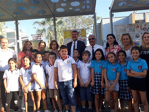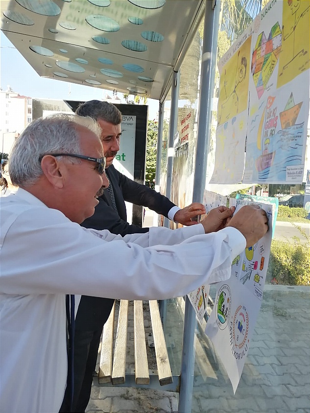 Kıbrıs ve Fatih ilkokulları tarafından yürütülen proje kapsamında gerçekleştirilen ikinci etkinlikte, öğretmenler ve öğrenciler tarafından hazırlanan matematikle ilgili göreseller duraklara asıldı.