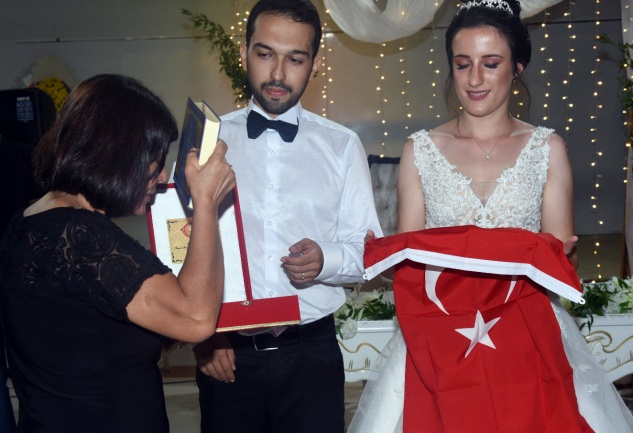 Düğüne katılan Anamur Belediye Başkan Yardımcısı Türkan Kasapoğlu da beraberinde MHP İlçe Başkanı Adnan Gübbük ve yöneticilerle, şehir dışında olması nedeniyle düğüne katılamayan Belediye Başkanı Hidayet Kılınç’ın selamını ve iyi dileklerini ileterek genç çifte Kılınç’ın Türk Bayrağı ve Kur’an-ı Kerim hediyesini takdim etti. Anamur Ülkü Ocakları Başkanı İbrahim Ateş de genç çifte Türk bayrağı hediye etti. Anamur Gazeteciler Cemiyeti Başkanı Zümrüt Cömertler de genç çifte yönetimi adına hediye vererek mutluluklar diledi.