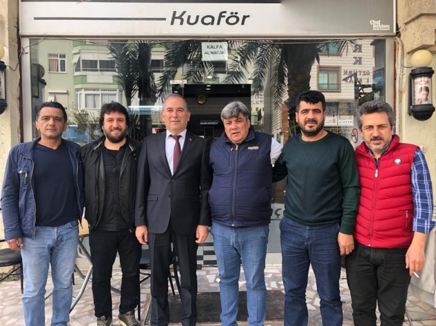 Anamur Belediye Başkanı ve İYİ Parti Anamur Belediye Başkan Adayı Mehmet Türe ile CHP Anamur Belediye Başkan Adayı Durmuş Deniz, Yeşilyurt Mahallesi Muhtar Adayı Türkay Ehliz’i işyerinde ziyaret etti.