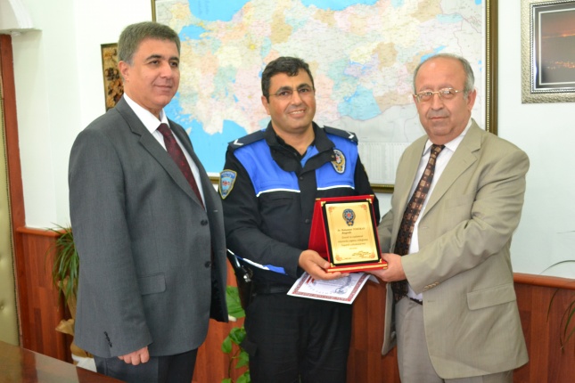 Cantürk, konuşmasının ardından Başpolis Muhammet Temizkan, polis memurları Ebu Bekir Zambay, Gülşah Gök Aksoy ve Mustafa Kula ile bilgisayar işletmeni Mustafa Yılmaz’a başarı belgesi verdi.