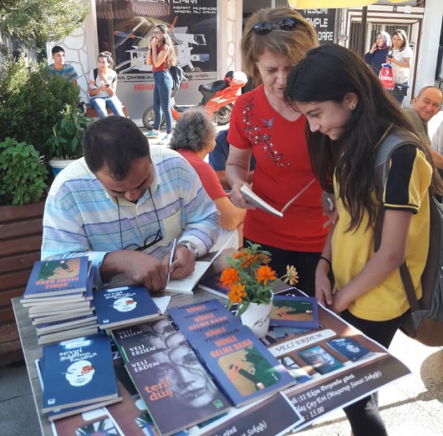 Erdem, Muşurup Sanat sokağındaki imza gününde son kitabı Dünle Gelme Bana’yı ve diğer kitaplarını imzaladı.