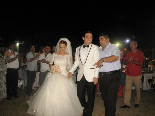 Yoğun bir katılımın olduğu bu muhteşem düğünde gelin ve damadın aileleri gelen konukları kapıda karşılayarak ev sahipliği görevlerini en güzel şekilde yaptılar.