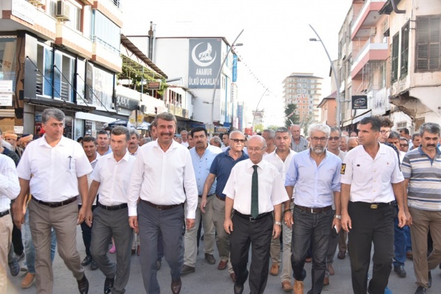Anamur Belediyesi önünden başlayarak Bankalar Caddesi Muşurup Sanat Sokağı’na kadar yapılan yürüyüşe, Anamur Kaymakamı Mehmet Kurdoğlu, Anamur Belediye Başkanı Hidayet Kılınç, Anamur Belediye Başkan Yardımcıları, Anamur İlçe Jandarma Komutanı Astsubay Kıdemli Başçavuş Cem Tevfik Kayabaşı, Mersin Büyükşehir Belediye Genel Sekteter Yardımcısı Haydar Ali Ulusoy, Anamur İlçe Emniyet Müdürü Mehmet Güngör, MHP Anamur İlçe Başkanı Adnan Gübbük, Ak Parti Anamur İlçe Başkanı Feyzullah Yılmaz, CHP Anamur İlçe Başkanı Turabi Yeşilçayır, Ziraat Odası Başkanı Ahmet Şeref Gümüş, Anamur İlçe Tarım Müdürü Niyazi Sarıoğlu , KKTC Girne Meclis Üyesi Abdurrahman Şanverdi, muhtarlar, siyasi parti ve sivil toplum örgütü temsilcileri ile konuk ülkelerden ve ülkemizden gelen Halk Oyunları ekipleri ve vatandaşlar katıldı.