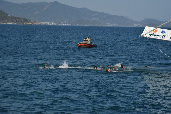 Anamur İskele’sinde gerçekleşen yüzme yarışlarına bayanlar ve Erkekler ayrı kategoride olmak üzere yoğun ilgi gösterdi. İskele Burnu yanında yattan başlayan yarış sahilde son buldu. Yarışlarda bayanlarda 1.Elif Zengin 2.Eylül yakar 3.Cemile Güneş oldu. Erkekler kategorisinde ise 1.İbrahim Mertdoğan 2.Berkan Akyol 3.Cem Süha Güzel oldu. 1.’lere yarım, 2.cilere ve 3.lere çeyrek olmak üzere tüm katılımcılara madalya verildi.