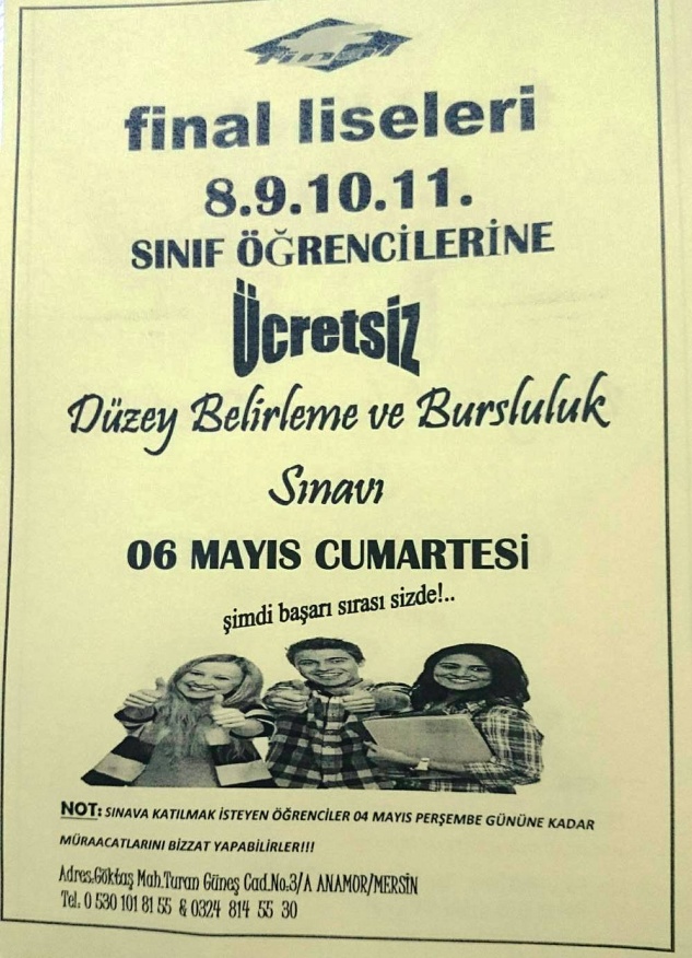 Yönetim kadrosu olarak karar alan Kurum 6 Mayıs 2017 tarihinde 8.9.10.11. Sınıf öğrencilerine düzey belirleme ve bursluluk sınavını ücretsiz yapıyor.