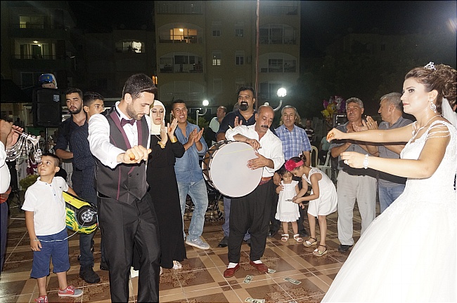 Gelin Funda güzelliği ile tüm dikkatleri üzerine çekerken, Damat Yakup ise yakışıklığı ile dikkat çekti. Gecede misafirlere ikram edilen düğün pastasından birbirlerine tattıran gelin damat’ta inşallah hayatımızda hep böyle tatlılıkla devam eder sözü ile dilekte bulundular. Daha sonra gecede birbirinden güzel parçaları ile davetlileri eğlendiren Yöresel Sanatçı Ali Koyu ve Antepten özel gelen müzisyenlerin çaldığı yöresel oyunlar ile eğlence tavan yaptı. Anamur Halk oyunları bölümünde ise sahneyi geleneğini bozmayan yetişkinler grubu halk oyunları ekibinde Belediye Başkanı Mehmet Türe, Anamur Belediyespor Kulüp Başkan Yardımcısı Ahmet Türe ve ekipler oynadıkları oyunlarla davetlilerden büyük alkış aldılar.