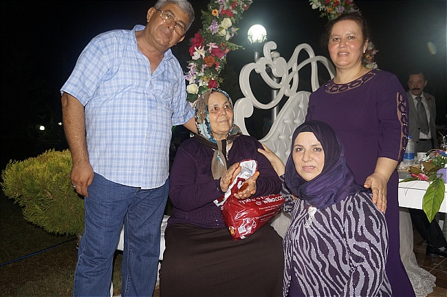 Düğün törenine gelen konukları kapıda karşılayan her iki aileninde Anne ve Babaları masa masa gezerek katılımcılara tek tek hoş geldin dediler.