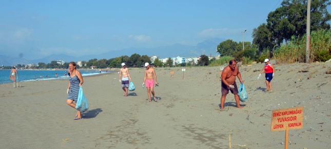 İskele mahallesinde ikamet deden ve tatile gelen gönüllü vatandaşlar Dragon parkı önünde sahil temizliği yapmaya başlayınca sahile güneşlenmeye gelen vatandaşlardan bazıları da katkıda bulundu.