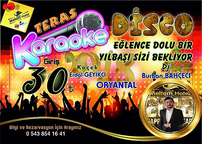 Konuklarına birbirinden farklı etkinliklerle ev sahipliği yapacak olan GRAND MELTEM SUİT HOTEL VE OCAKBAŞI RESTORAN’TA Geceye özel leziz yemeklerin yanında TERAS DİSKODA canlı müzik ve dans şovlarına ev sahipliği yapacak olan otelde eğlenceli bir akşam geçirmek için rezervasyon yaptırmayı unutmayın. Bu özel partiyi kaçırmayın işte detaylı ayrıntıları…