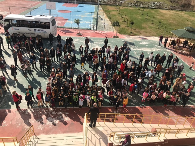 2018-2019 Eğitim Öğretim Yılı’nın birinci döneminin tamamlanması dolayısıyla okulda düzenlenen törende öğretmenler öğrencilerine karnelerini, başarı belgelerini ve en çok kitap okuma ödüllerini verdi.