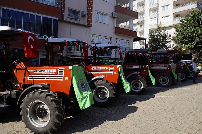Anamur Ziraat Odası Başkanlığı Devlet Destekli uygun faiz ve ödeme koşullarıyla yerli üretimi Traktörleri Ziraat Odası önünde düzenlediği düzenlen törenle çiftçilere teslim etti.