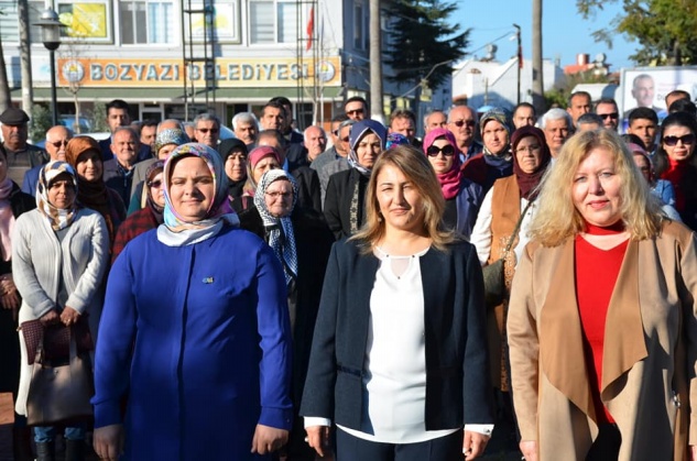 Cumhuriyet meydanında düzenlenen törene katılan Hasdeniz, törenin ardından semt pazarı ve işyerlerini ziyaret ederek Kadınlar Günü dolayısıyla kadınlara çiçek verip günlerini kutladı.