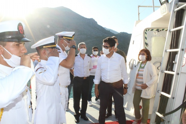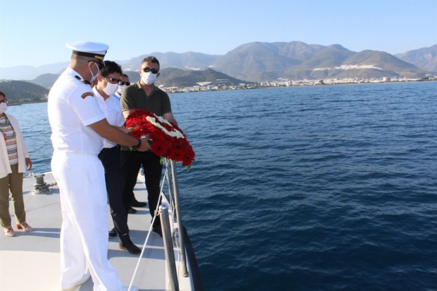 Protokol, daha sonra denize çelenk bırakarak deniz şehitlerini andı.
