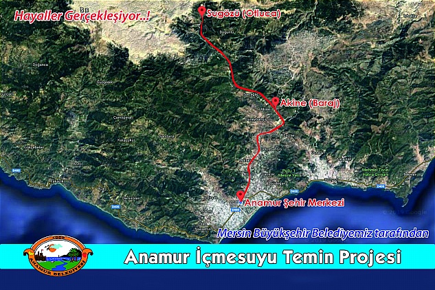 Anamur İçme suyu Temin Projesi; Mersin Büyükşehir Belediyemiz ve Anamur Belediyemiz işbirliği ile Sugözü Otluca Mevkiinden, Anamur Şehir Merkezine kadar içme suyu hattı döşenerek Anamur’un içme suyu sorunu çözüme kavuşturulacaktır.