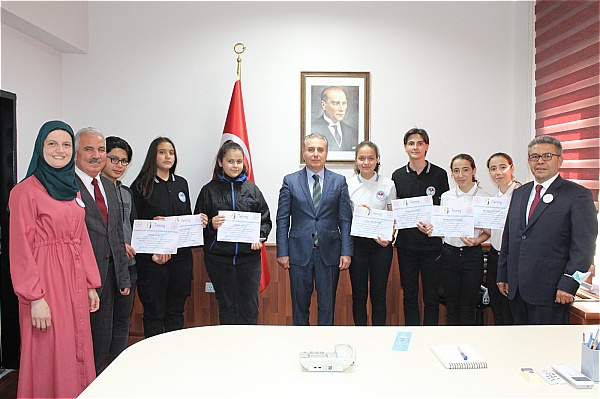 “TWINEDU COMPANY “ projesi eTwinning Türkiye özel ödülleri girişimcilik kategorisinde  Türkiye birincisi olan Şehit Şükrü Ünlü Ortaokulu öğrencileri, projeden sorumlu öğretmen Gülname Kayhan ve okul müdürü Yusuf Batkı Milli Eğitim Müdürü İlyas Mercan ile birlikte Kaymakam Bilal Bozdemir’i makamında ziyaret ederek birinci olmanın gururunu Kaymakam Bozdemir’le paylaştılar.