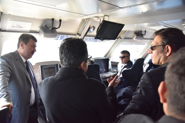Anamur Kaymakamı İsmail Gültekin, Belediye Başkanı Hidayet Kılınç, Cumhuriyet Başsavcısı Seyfettin Ünal, İlçe Emniyet Müdürü Ertuğrul Ekici, İlçe Jandarma Komutanı Binbaşı Savaş Cingöz, Anamur Ticaret ve Sanayi Odası Başkanı Ferudun Torunoğlu ve DSİ Anamur Şube Müdürü Mustafa Karabacak, Bozyazı Sahil Güvenlik Komutanlığına ait tekne ile KKTC Su Temin Projesi’nde arıza meydana gelen bölgeyi yerinde inceledi.