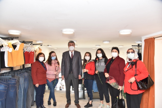 Anamur Belediye Başkanı Hidayet Kılınç 8 Mart Dünya Kadınlar Günü nedeniyle işyerlerini ziyaret ederek çiçek dağıttı.