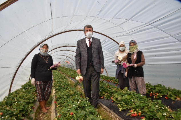 8 Mart Dünya Kadınlar günü programına belediye hizmet binası içerisinde görev yapan kadınlara çiçek dağıtarak başlayan Belediye Başkanı Hidayet Kılınç beraberinde MHP Anamur Kadın Kolları Başkanı, belediye başkan yardımcıları, belediye meclis üyeleri ve görevli personellerle Bulvar Caddesi esnaflarını ve çilek tarlasında çalışan kadınları ziyaret ederek çiçek dağıtımı gerçekleştirdi.