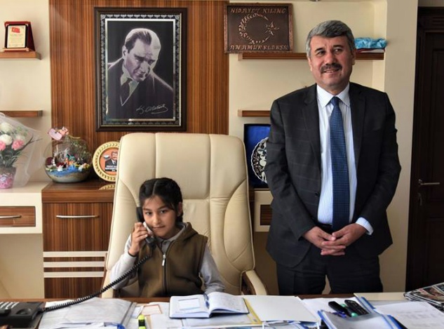 Anamur Belediye Başkanı Hidayet Kılınç, 23 Nisan Ulusal Egemenlik ve Çocuk Bayramı nedeniyle koltuğunu ,15 Temmuz Milli İrade İlkokulu öğrencisi Hayrunnisa Liman’a devretti.