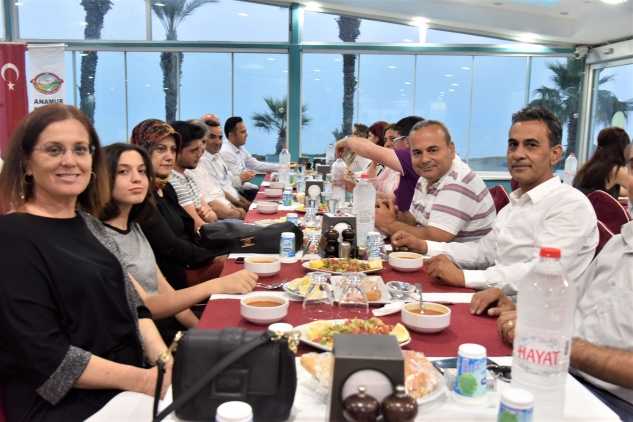 Öğretmenevinde, Anamur Belediyesi’nin İlçe Amirler için düzenlemiş olduğu iftar sofrasına, İlçe Kaymakamımız Mehmet Kurdoğlu, Garnizon Komutanı Şaban Delioğlu, Cumhuriyet Başsavcısı Oğuz Şükrü Ener ve bir çok idari amir katıldı. Anamur Belediyesi din adamı Yalçın Şahin’in Kur’an-ı Kerim tilaveti ile başlayan iftar programında konuşma yapan Başkan Kılınç; “Ramazan ayının bu güzelliği içerisinde bugün bir araya geldik. Bizlerin davetini kırmadınız ve teşrif ettiniz, çok teşekkür ederim. Ayrıca ramazan ayının sonuna geliyoruz ve önümüzde kadir gecesi ve ramazan bayramı var, şimdiden mübarek kadir gecenizi ve ramazan bayramınızı tebrik ediyorum” dedi. Başkan Kılınç konuşmasının sonunda, ” Değerli amirlerim ve değerli yöneticilerim göreve geldiğim günden bu yana, başta Sayın Kaymamakmım olmak üzere tüm daire müdürlerim, bize vermiş olduğu bir destek var. Bundan dolayı da teşekkür ediyorum.” dedi. Anamur Belediye Başkanı Hidayet Kılınç’ın konuşmasının ardından, oruçlarını açan daire amirleri, Anamur Belediyesi din adamı Yalçın Şahin’in okuduğu iftar duası ve Kurân-ı Kerim’le iftar programımı son buldu.