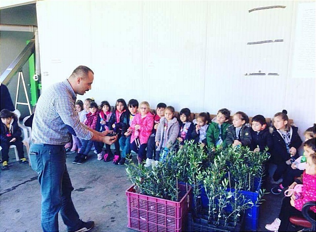 Burada Zeytin fidelerini toprakla buluşturan öğrencilere fabrikayı gezdirip Zeytin’in yağa dönüşme evreleri hakkında, öğretmen ve öğrencileri makineler önünde bilgilendiren işletme sahibi Adem Koç, zeytinin ve zeytinyağının sağlığa olan katkı ve önemini öğrenmenin çocuklar için çok önemli olduğunun altını çizerek yapılan ziyaretten duyduğu memnuniyeti dile getirdi. Öğrencilerin sorularını yanıtladı.