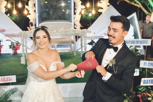 Aileler, akrabalar ve davetliler, genç çiftin mutluluğuna ortak oldu.