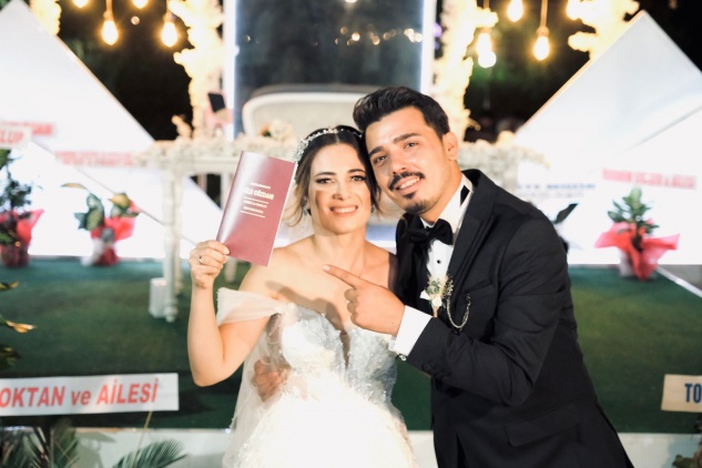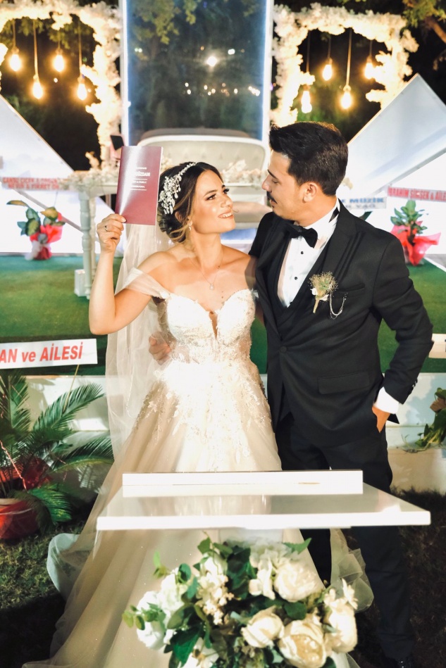 “Düğünümüze uzaktan ve yakından katılarak bizleri onurlandıran, bizleri bu en mutlu günümüzde yalnız bırakmayarak yanımızda olan tüm dostlarımıza çok teşekkür ediyorum.