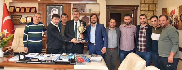 Antalya’da düzenlenen futbol turnuvasında başarılı maçlar oynayarak büyük başarı elde eden Anamur Yörük Masterler Takımı, ikincilik kupasının mutluluğunu Belediye Başkanı Hidayet Kılınç ile paylaştı.