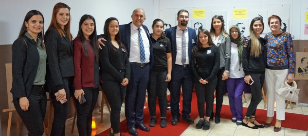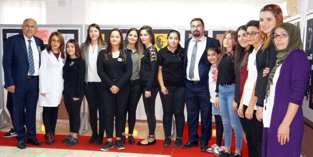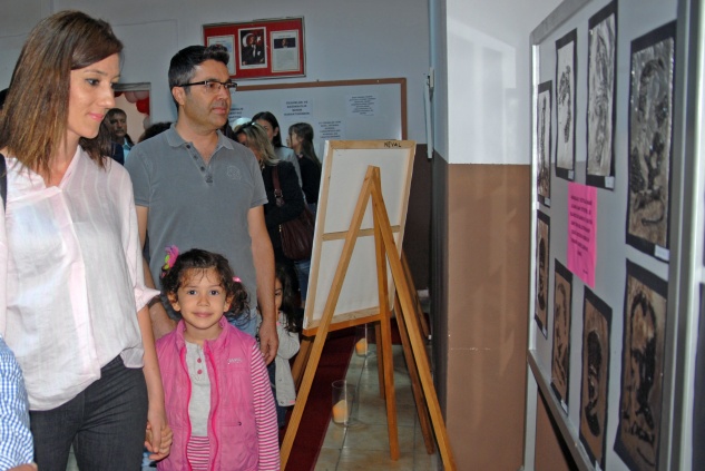 Daha sonra protokol tarafından kurdele kesilerek açılan sergi gezildi. Resim Öğretmeni Sibel Ehliz ve öğrenciler, protokole ve sergiyi gezen ziyaretçilere çalışmalarla ilgili bilgiler verdiler.
