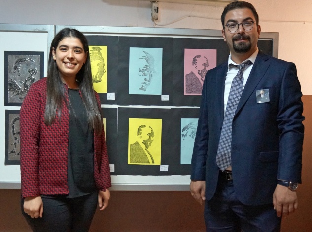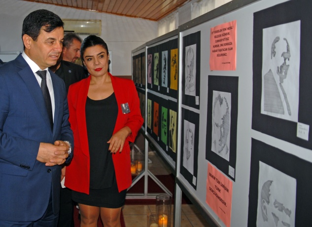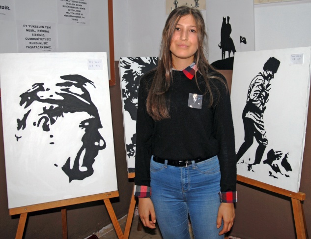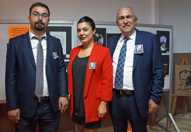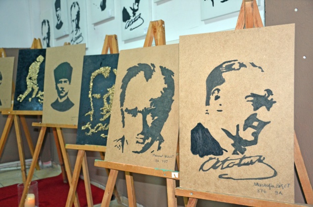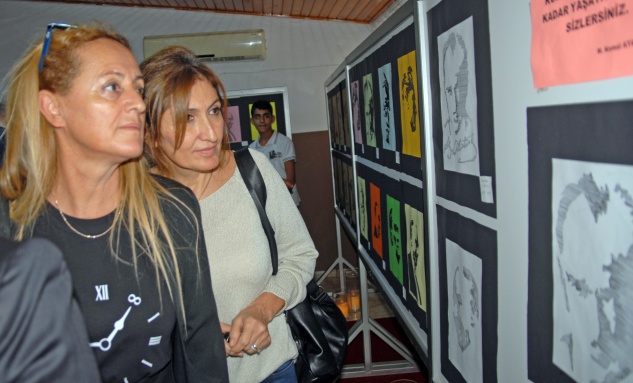 Alıçlı, her 10 Kasım’ın hüzün olduğunu belirterek, “Ama bu hüzne rağmen Atamızın bize göstermiş olduğu yolda gençlerimizle beraber yürümeye devam edeceğiz. Bu kapsamda her yıl 10 Kasım’da Atatürk’ün elle yapılmış resimlerinden oluşan sergi açıyoruz. Bu sergide tüm sınıflarımızda çalışmış 120 civarında Atatürk portre ve figürleri yer alıyor. Bu resim figürleri eğitim öğretim yılının başladığı günden bu yana yapıldı” şeklinde konuştu.
