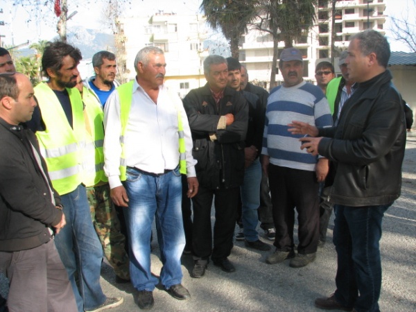 Anamur’dan Kuzey Kıbrıs Türk Cumhuriyetine su taşıyacak olan boru hattı işçileri, 5 aydır hak ediş paralarını alamadıkları gerekçesi ile greve gittiler. Cuma gününden bu yana grevde olduklarını söyleyen Kutay İnşaat çalışanları, Anamur Ören Beldesi’nde bulunan Şantiye önünde topluca basın açıklaması yaptılar. 30 kişilik ekibin 5 aydır parasını alamadığını kaydeden İnşaat İşçileri evlerine ekmek götürecek paralarının kalmadığını ve üniversitede okuyan paralarını göndermediklerini belirterek, ‘Haklıyız hakkımızı isteriz.’ Diyerek slogan attılar. İnşaatın demir işçiliğini yapan ekip başı İsa Yağ, kendisinden önce işçilerine para ödeyemediğini ve zor durumda kaldığını söyledi. İşçiler, Örende ki inşaat şantiyesinin önünden slogan atarak arabalarına bindiler ve Anamur Şehir Merkezinde bulunan Devlet Su İşleri Şube Müdürlüğünün önüne geldiler. Burada dilekçelerini Şube Müdürü Ali Çakmak’a vermek isteyen inşaat işçileri, güvenlik engeli ile karşılaştılar. Güvenlik görevlisi önce kabul etmedi, sonra Şube Müdürü Ali Çakmak ile telefon görüşmesi yaparak bir kişinin dilekçeyi vermesine müsaade etti. Daha sonra işçilerin yanına gelen Devlet Su İşleri Anamur Şube Müdürü Ali Çakmak, firmanın parasını Kuzey Kıbrıs Yardım Fonundan aktarmalı aldığı için prosedürün uzadığını, ancak birkaç gün içerisinde sorunun çözüleceğini söyledi. Çakmak, işçilerin dilekçelerinin incelenmesinden sonra firmadan işçi bordrolarının isteneceğini ve önce çalışanların paralarının ödeneceğini kalanının da firmaya aktarılacağını söyledi. Ali Çakmak’ın açıklamasının ardından inşaat işçileri Müdürü alkışlayarak olaysız dağıldılar. Çalışanlar paralarını aldıktan sonra çalışmaya devam edeceklerini söylediler.