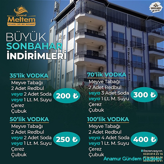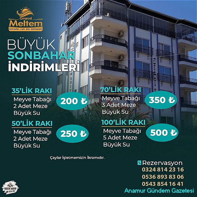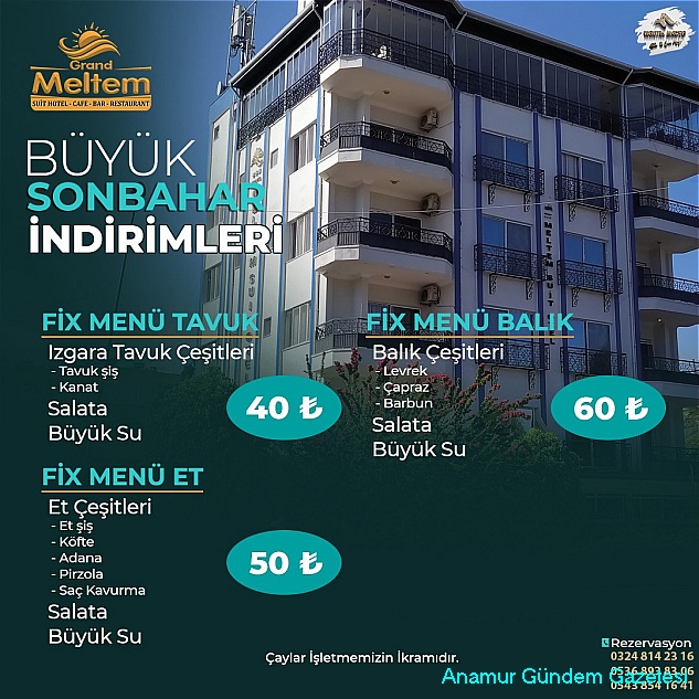 İskelede yaz boyunca farklı konseptleir ve canlı müzik proğramalrı ile müşterilerine doyumsuz yaz akşamaları yaşatan Meltem Otel yine Sonbahar proğramları için tüm hazırlıkalrını tamamlayarak müşterilerine hizmet etmeyi bekliyor.